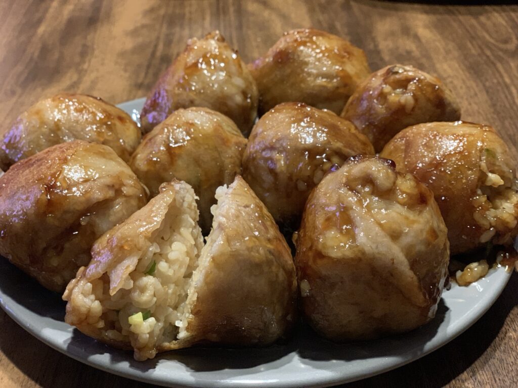 肉巻きおにぎり、うまし。