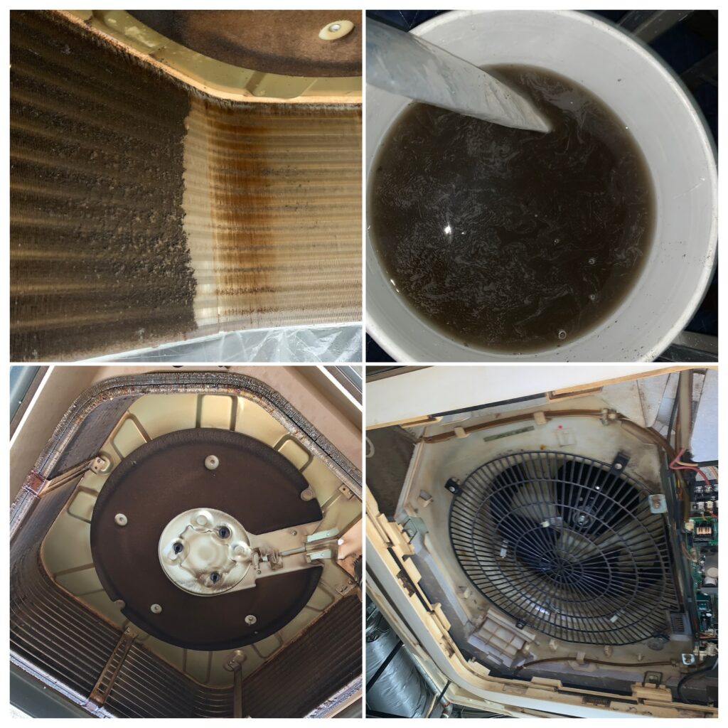分解してみると、熱交換器や部品がタバコのヤニでびっしり💦